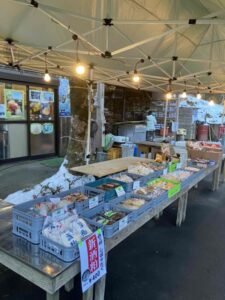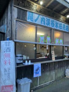残雪があるなか、尾ノ内氷柱の売店は元気に営業していました!