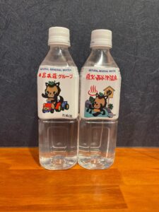 当館ではたぬ治がラベルに描かれたお水も販売しています(((o(*゚▽゚*)o)))